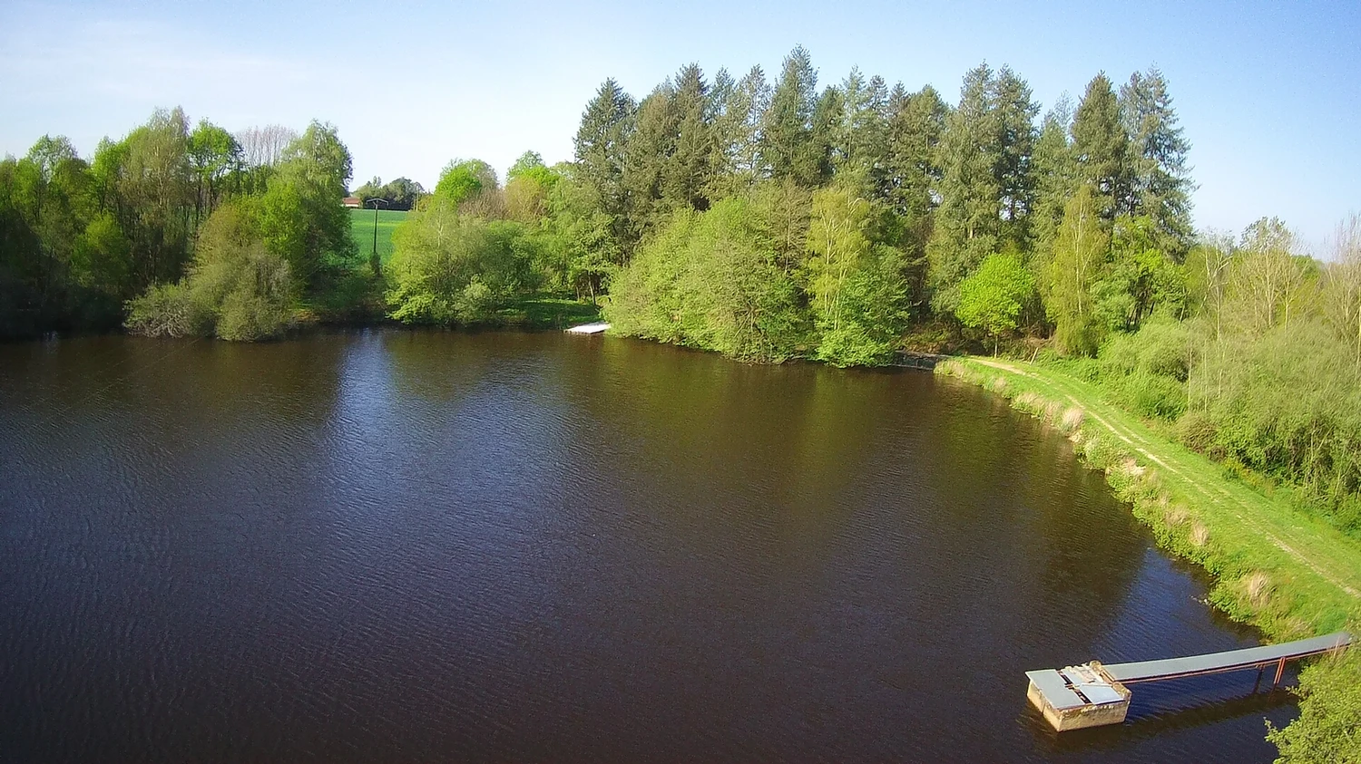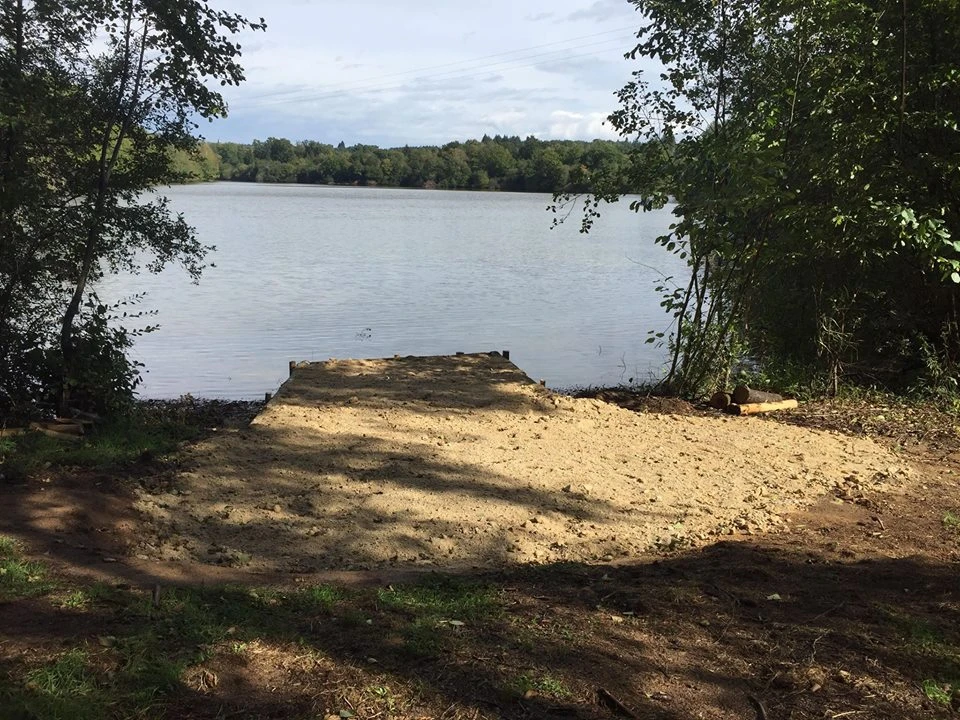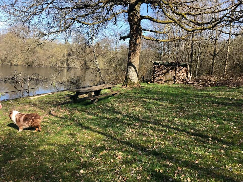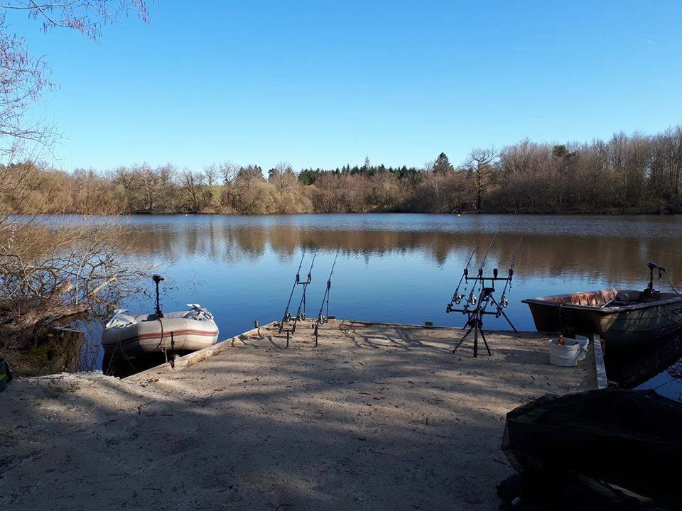 Poste double, option 3 pêcheurs ( 3 cannes pêcheurs / - 10 Euro par 24H pour le groupe ) , c'est le poste central de l'étang, le plus grand en terme de superficie, avec presque 3 hectares d'eau a explorer.