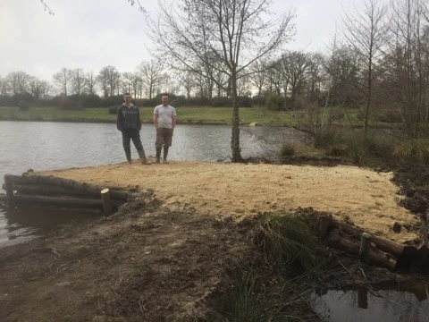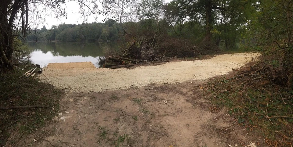 Le pleine eau avec le lit du ruisseau est a porté de canne, l'étang se réduit sur cette zone, principalement une zone sableuse, en pente douce.