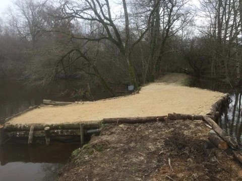 Lit du ruisseau pleine eau, quelques arbres et piquets sur le pleine eau sont a cherché aussi...