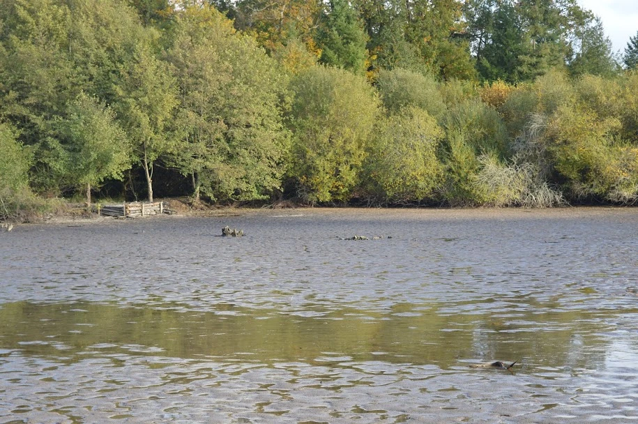 La bordure d'en face est l'entrée-sortie de baie du poste 4, un grand banc de sable ainsi que toute la bordure est occupé par des arbres immergés.