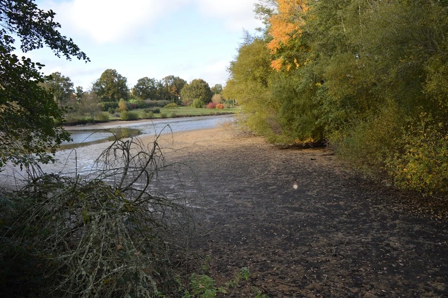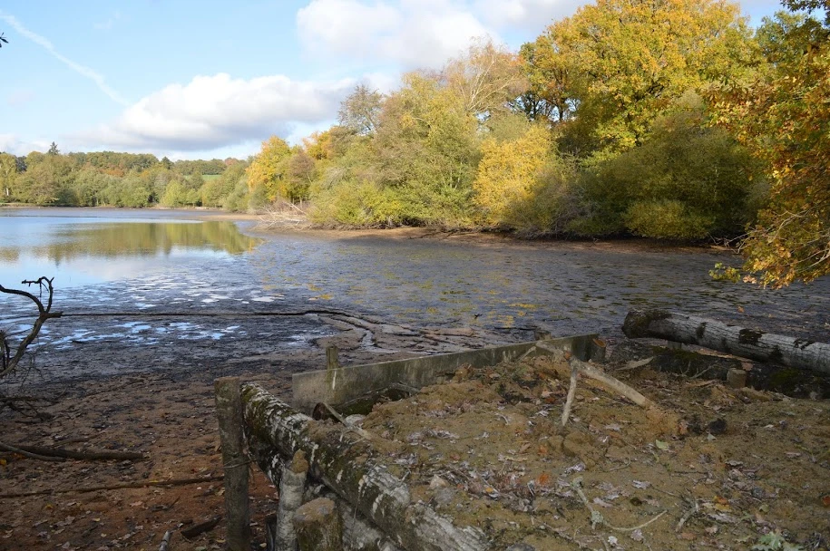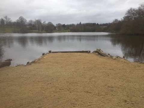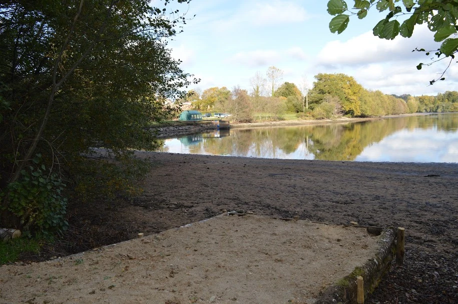 Le pleine eau avec le lit du ruisseau est a porté de canne, l'étang se réduit sur cette zone, principalement une zone sableuse, en pente douce.
