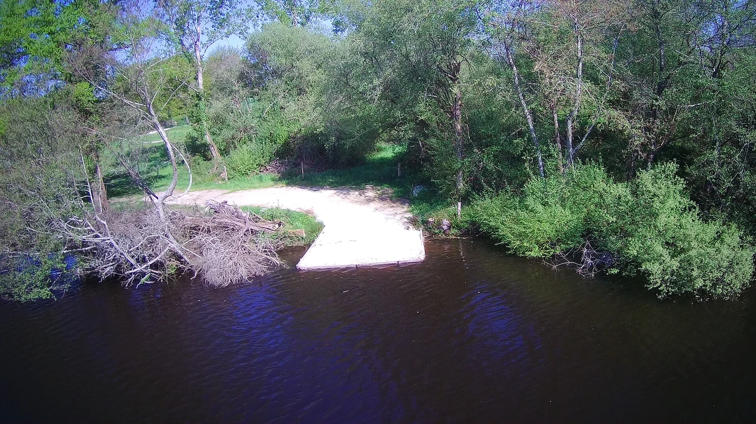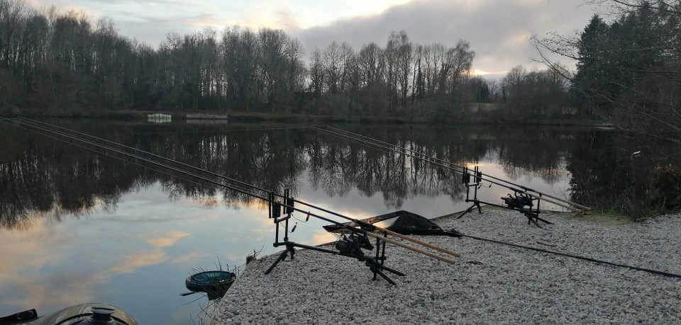 Poste double, option 3 pêcheurs ( 3 cannes pêcheurs / - 10 Euro par 24H pour le groupe ) , c'est le poste central de l'étang, le plus grand en terme de superficie, avec presque 3 hectares d'eau a explorer.