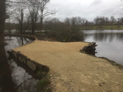 Tout est à porté de canne sur ce poste, bordures, arbres immergés, rocher digue, banc de sable, moine ( ouvrage de vidange ) ...