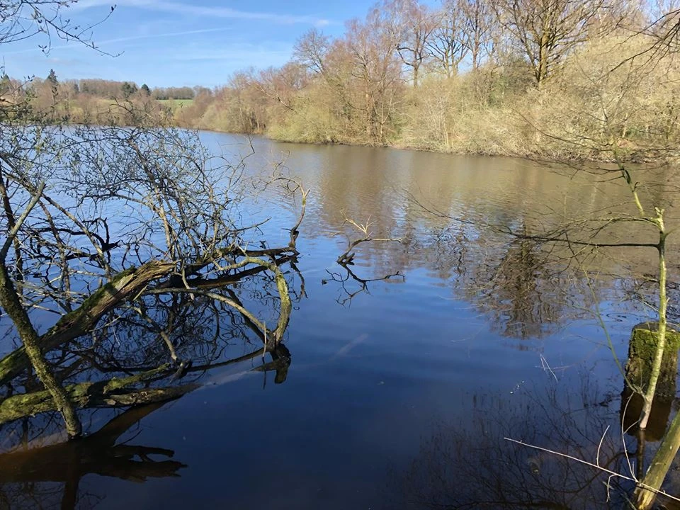 La pêche se fait aussi sur la berge d'en face, et sur le pleine eau, 200 mètres de largeur environ.
