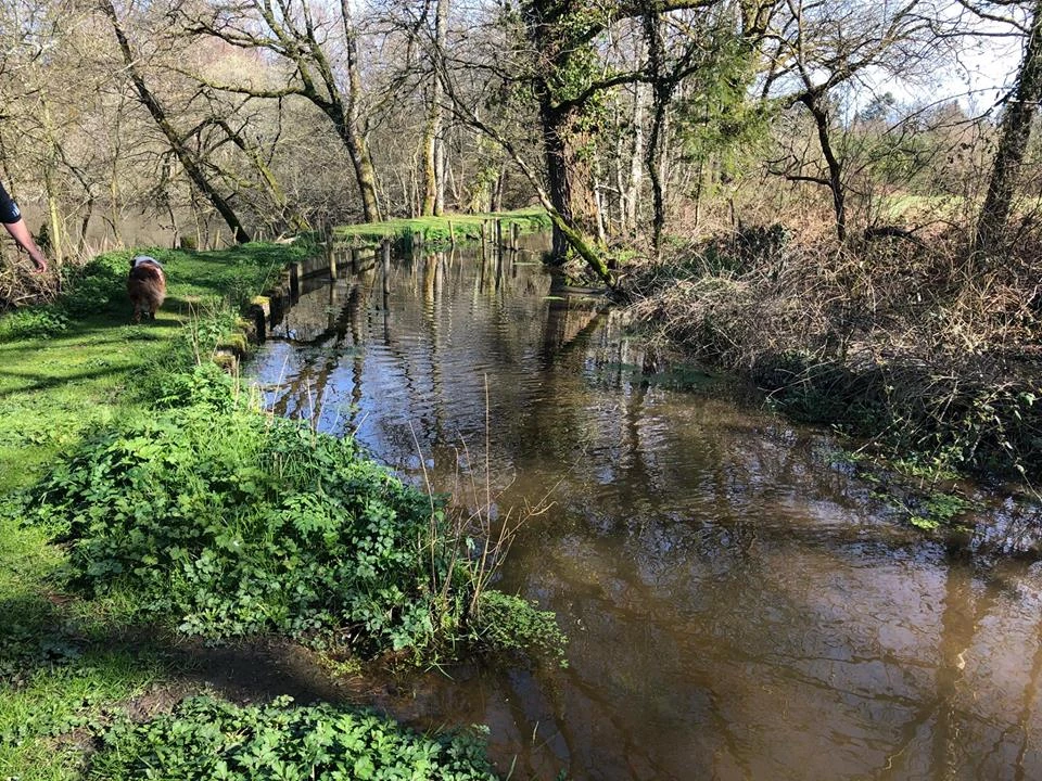 Lit du ruisseau pleine eau, quelques arbres et piquets sur le pleine eau sont a cherché aussi...